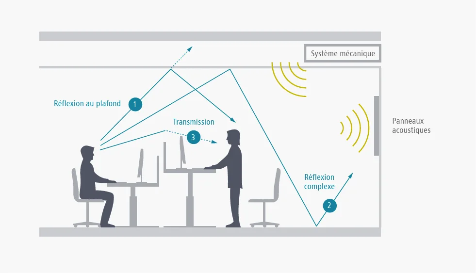 Le bruit est souvent cité comme la première source d’insatisfaction dans les bureaux en open-space. Le problème n’est pas tant le niveau sonore global que les interruptions brusques : une conversation téléphonique à voix haute, le choc d’une machine à café ou le bruit de pas dans un couloir. Chaque distraction sonore oblige le cerveau à faire un effort conscient pour se replonger dans sa tâche, un processus qui peut prendre jusqu’à vingt minutes selon certaines recherches en psychologie cognitive.